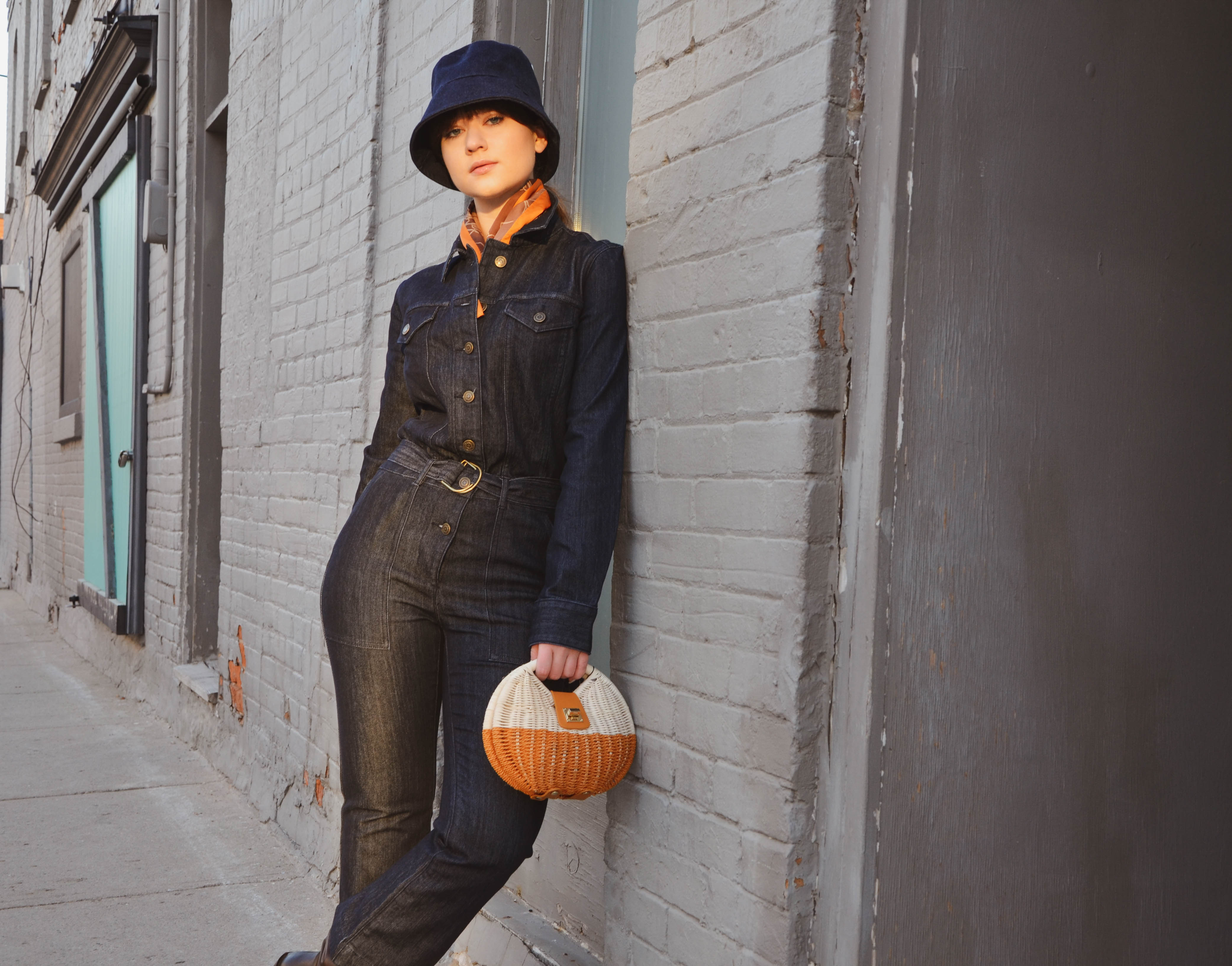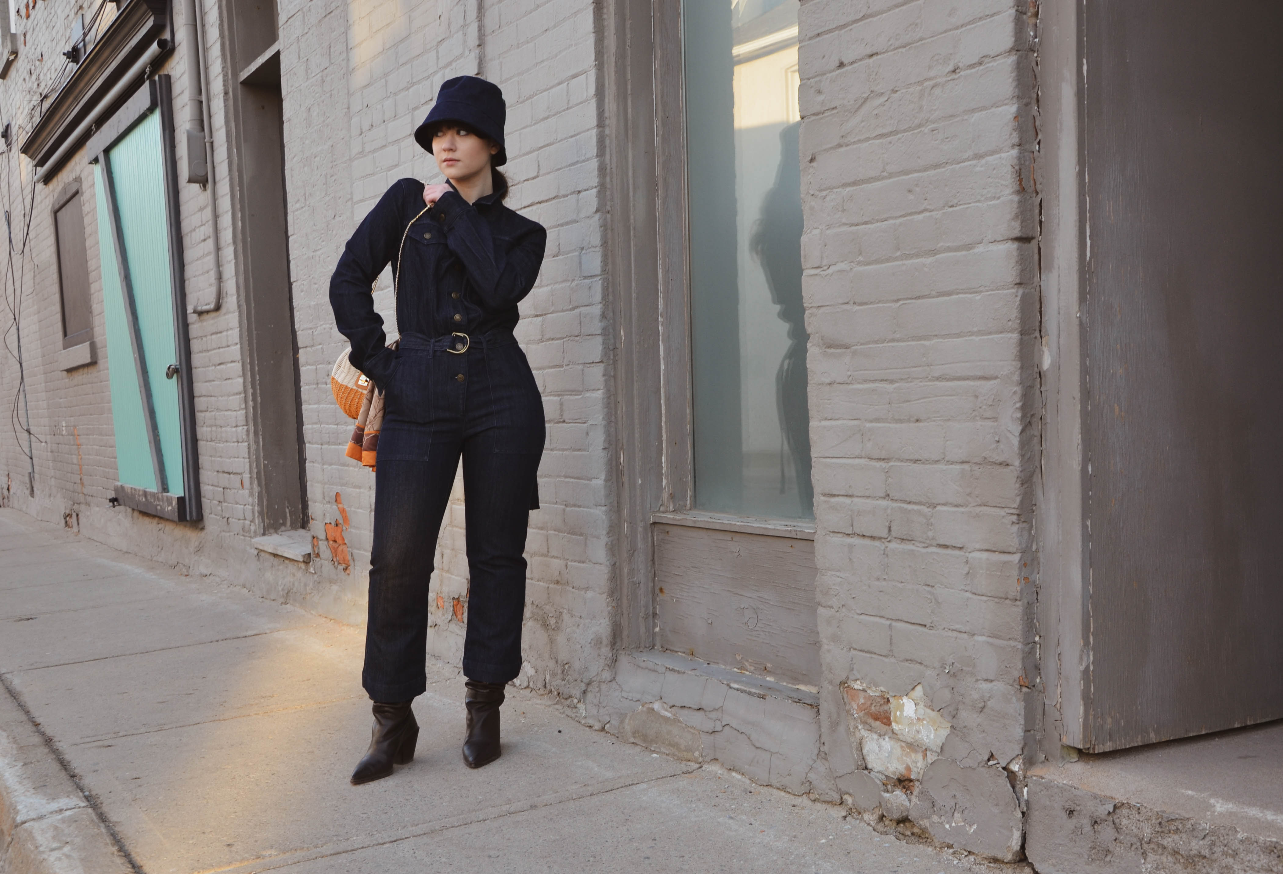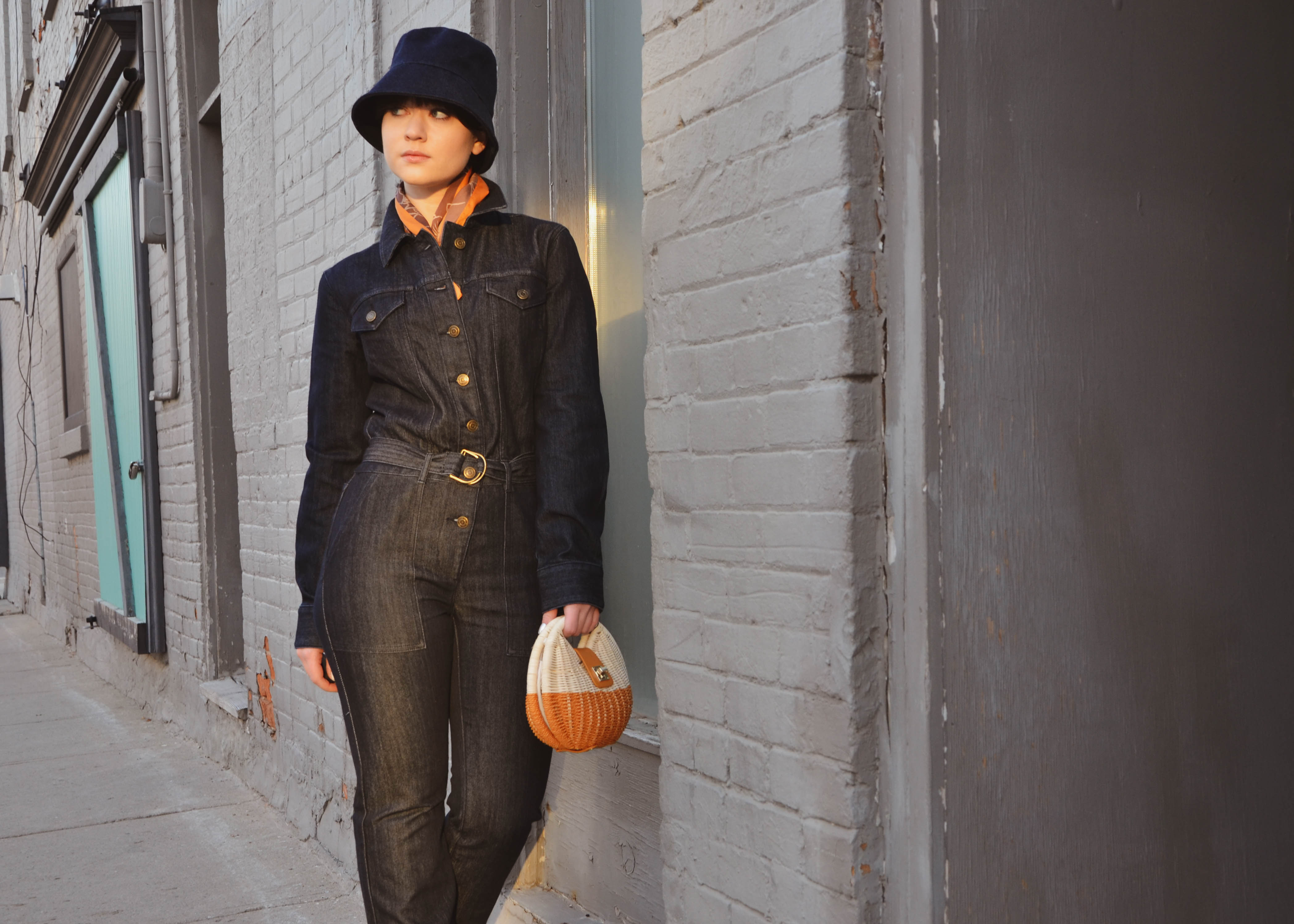 Here is one trend I never thought I’d buy into: Bucket Hats. When I was a child I hated them all, could just hear my parents saying ‘don’t forget your hat’ and then forcefully pulling it onto my head… what changed? I don’t know but something possessed me and told me to try it out to see if I could pull it off. I purchased one on a whim and realized that they are comfy, quite fun and in a way reminiscent of the 20’s flapper style hats. I paired it with a Michael Kor’s jumpsuit and played with your classic complimentary colors. What do you think of bucket hats? Is it a yay or nay?